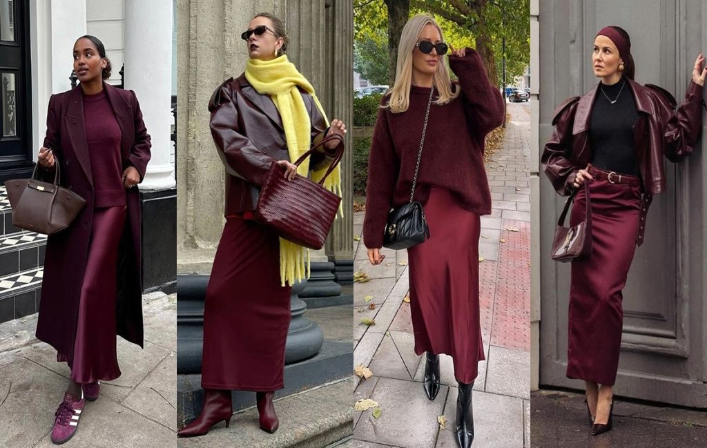 استایل با لباس‌های رنگ زرشکی و مشکی